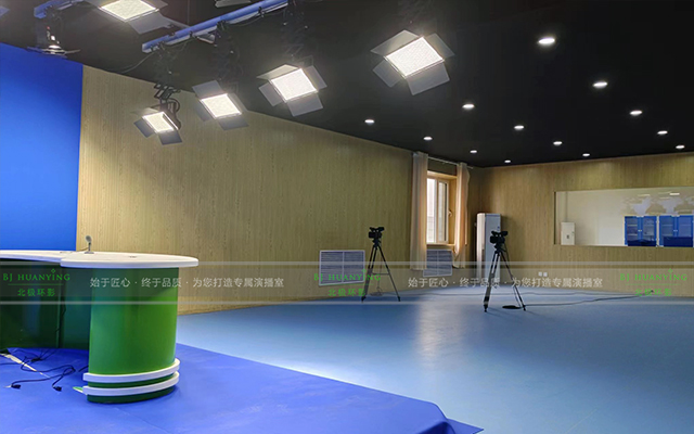 针对不同房间格局进行不同的校园电视台风格设计,所有的材料为阻燃、环保材料,隔音、回音处理到达业界较高水平。