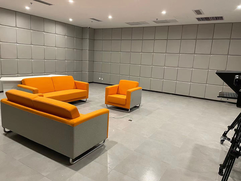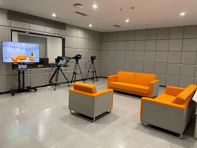 根据不同的节目需求,将不同节目内容背景带入屏幕画面,主持人与嘉宾加访谈区就坐,进行谈话录制。