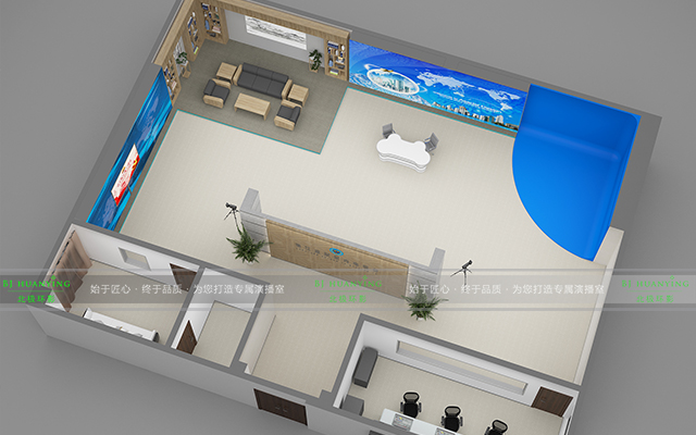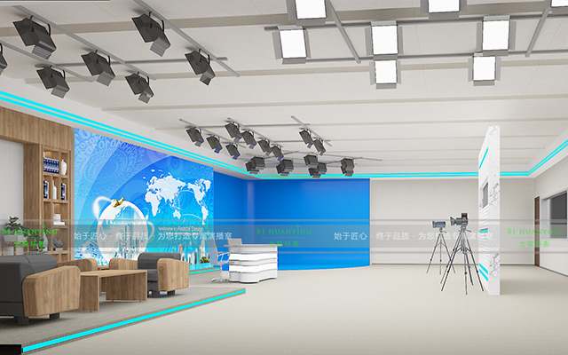 整个演播室功能全面,划分为播报区,座谈区,站播区,虚拟区,导播区几大区域,为用户提供了无限的创作和创意空间,满足客户多场景应用需求。该项目占地面积约140平米,施工周期2个月。