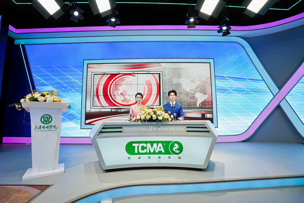 根据要求不知场景环境,部署演播桌椅、高清摄像机、桌面话筒、蓝箱/绿箱,专业灯光搭建、提词器等设备。