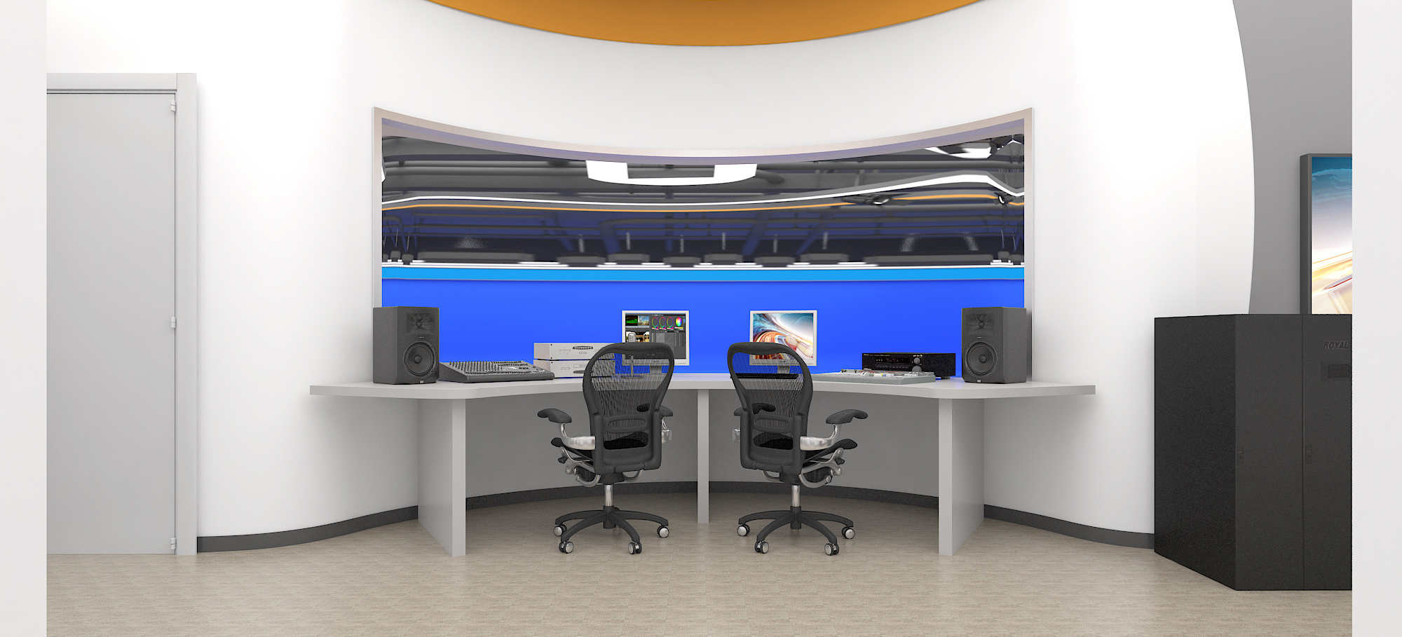 项目特点:演播室区域包括访谈区、站播区、虚拟抠像区,并设有导播室、化妆间。在声学装修上,我司使用环保材料,做出相应的隔音和吸声处理。在灯光设计上,灯光分布均匀,并由控制室远程控制。我司自主研发的虚拟演播室系统具有先进的渲染引擎,具备接近CG效果的实时渲染能力,让电视画面展现出影视级的细腻效果;